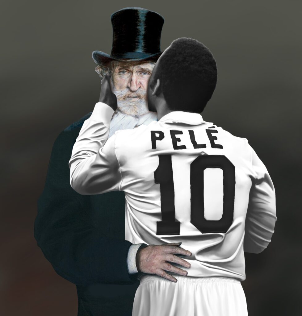 Pelé Beijoqueiro com Verdi. Obra de Luis Bueno.