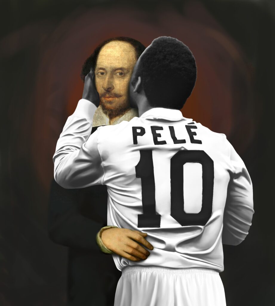 Pelé Beijoqueiro com Shakespeare. Obra de Luis Bueno.
