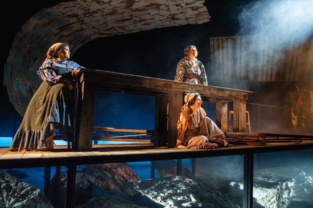 Caetano Vilela, que está à frente da encenação, deu um sentido dramatúrgico para essa abertura musical, utilizando a sinfonia para apresentar os personagens dos filhos e o marido da protagonista, que morrem no mar.